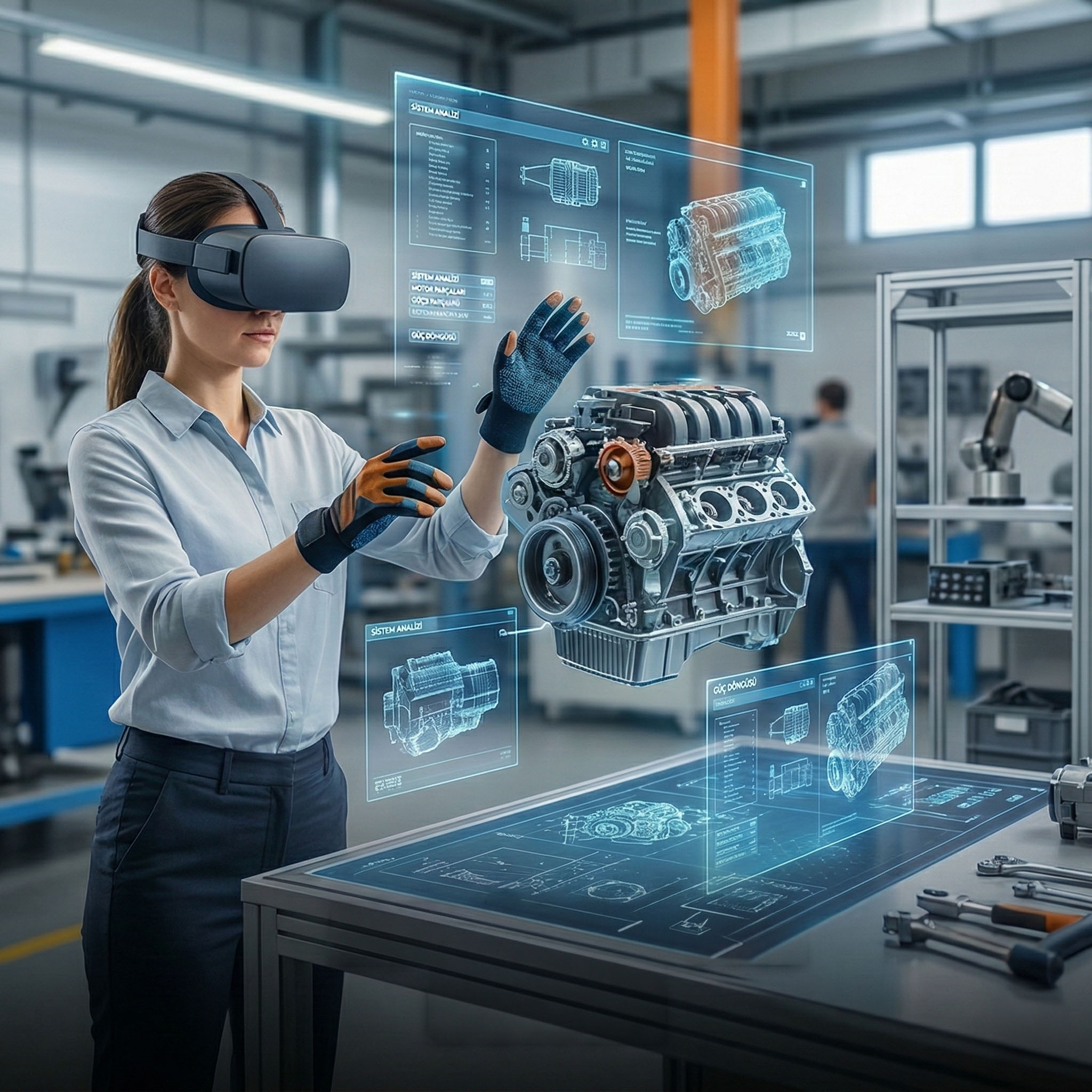 VR teknolojisi sayesinde çalışanlar riskli veya maliyetli süreçleri gerçek ortamda bulunmadan öğrenebilir.