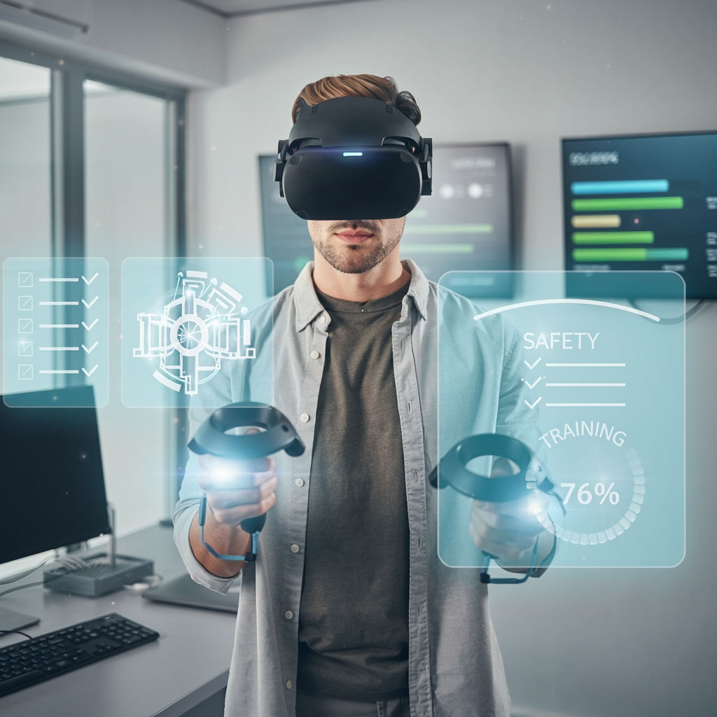 Sanal gerçeklik teknolojisinin en güçlü kullanım alanlarından biri eğitim simülasyonlarıdır. VR eğitim uygulamaları sayesinde çalışanlar karmaşık süreçleri güvenli bir ortamda öğrenebilir ve pratik yapabilir.